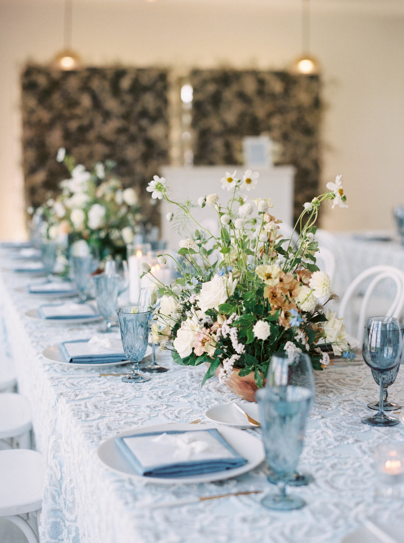 If you're not working with a planner, it might also be a good idea to check in with your entire vendor team to make sure they're aware of the weather. Hair and makeup may need to be tweaked to withstand humidity and if your wedding is outdoors, DJs and bands may need to take extra precaution to protect their gear. A quality rental team can also minimize the amount of mud at outdoor events.
